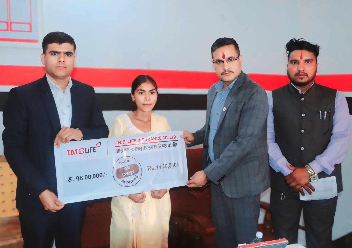 मृतक बीमितको परिवारलाई आई एम ई लाइफ इन्स्योरेन्स कम्पनी तालिम बिभाग प्रमुख सुनिल आचार्य र आई एम ई लाइफ इन्स्योरेन्स लुम्बिनी र कर्णाली प्रदेश प्रमुख प्रेम तिमिल्सिनाले बीमा बाफतको रकम हस्तान्तरण गरेका हुन् ।