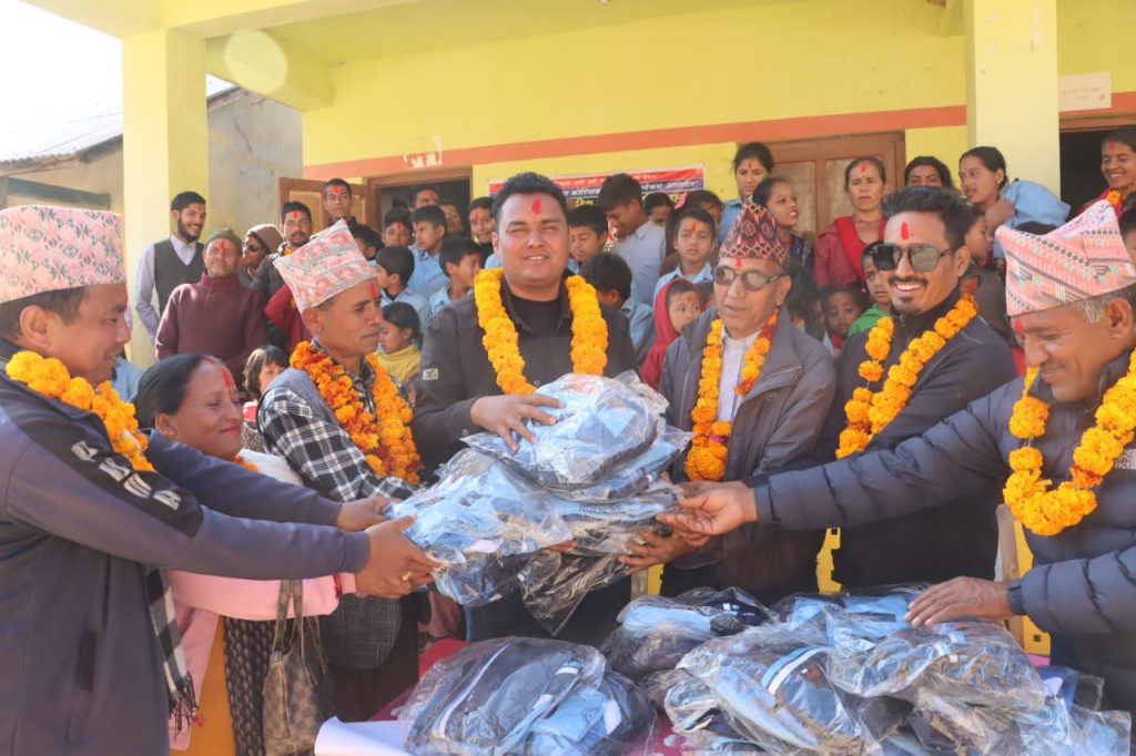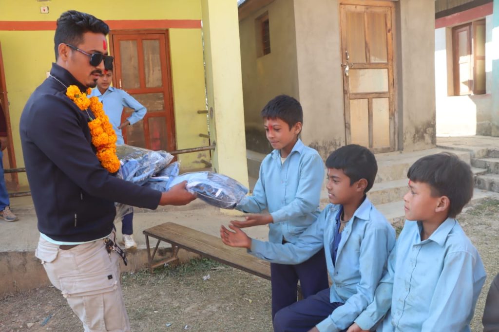 चलचित्र ‘१२ गाउँबाट’ आएकाे मुनाफाले सल्यानका विपन्न विद्यार्थीहरुलाई न्यानाे कपडा वितरण