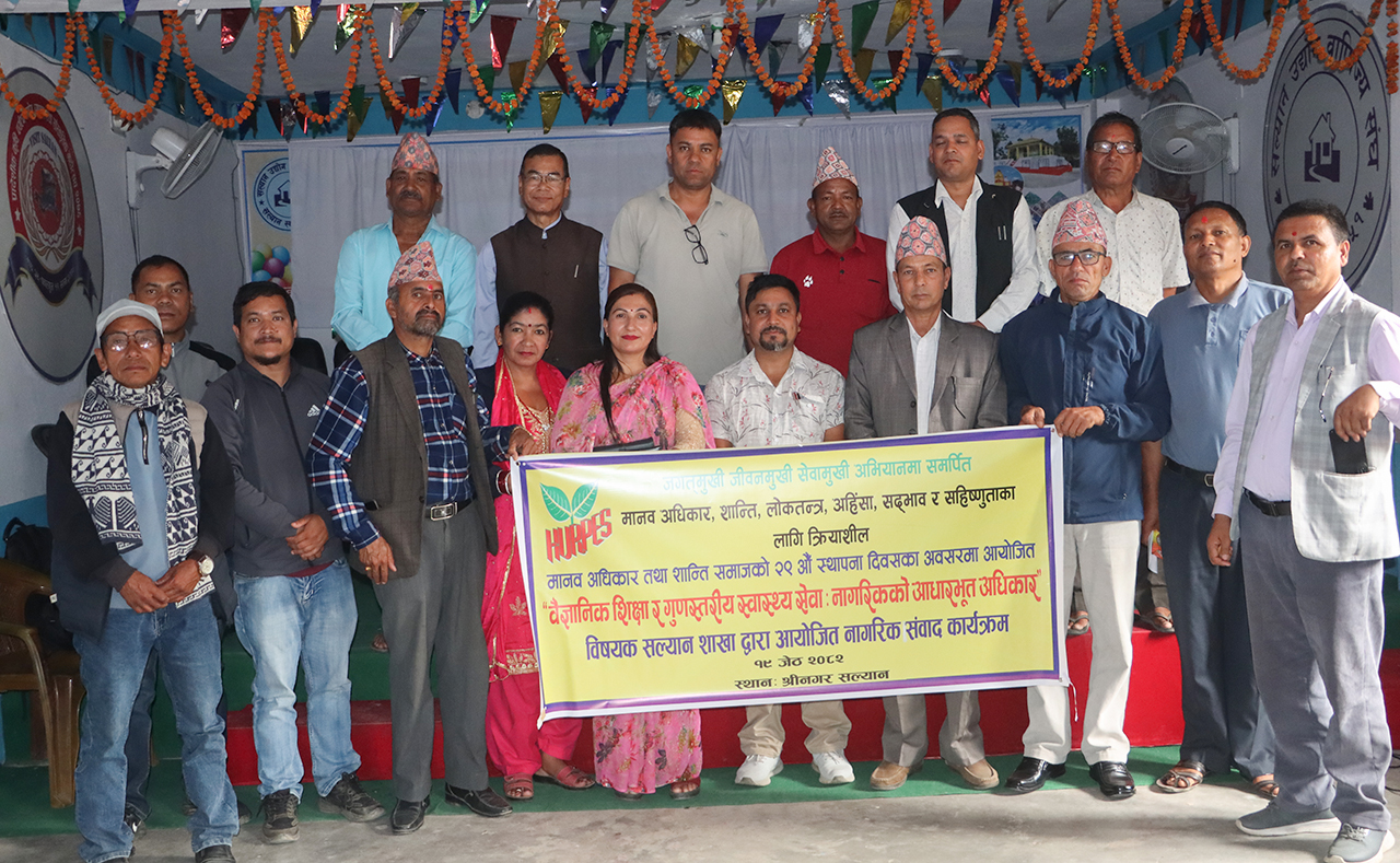 मानवअधिकार तथा शान्ती समाज सल्यानले २९ औं स्थापना दिवस साेमबार श्रीनगरमा एक कार्यक्रमकाे आयाेजना गरेर मनाएकाे छ ।