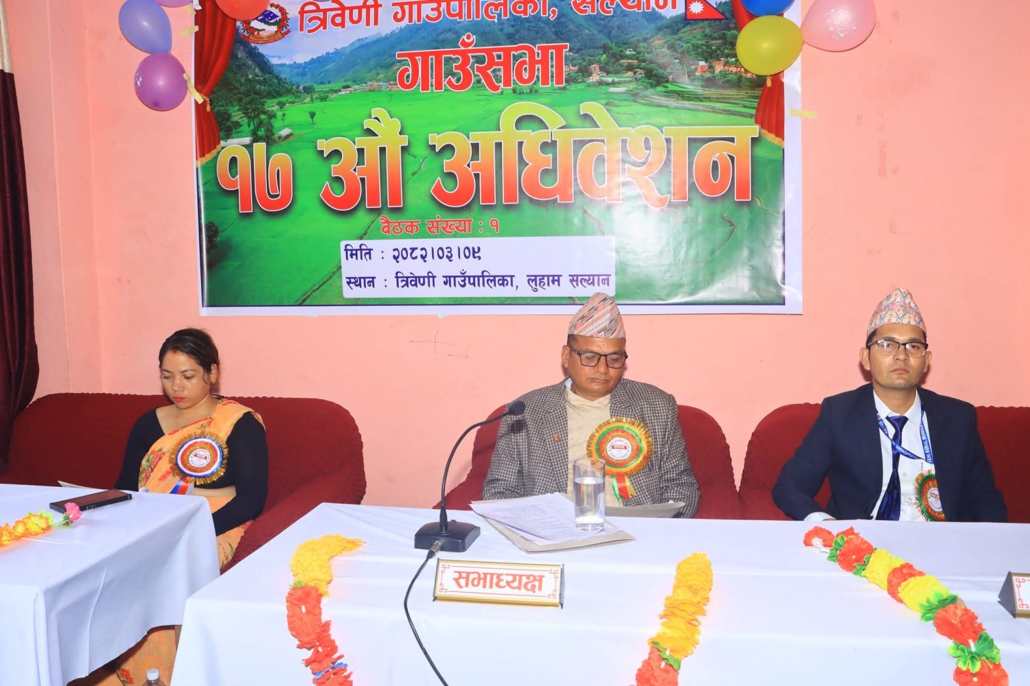 सल्यानको त्रिवेणी गाउँपालिकाले सोमबार सम्पन्न १७औं गाउँसभा तथा अधिवेशनमार्फत आर्थिक वर्ष २०८२/८३ का लागि ४५ करोड ८४ लाख ४१ हजार ५८४ रुपैयाँको बजेटसहित नीति तथा कार्यक्रम सार्वजनिक गरेको छ। उपाध्यक्ष सीता खड्का पुनले प्रस्तुत गरेको बजेट अनुसार स्रोत परिचालनमा संघीय सरकार, प्रदेश सरकार, आन्तरिक राजस्व, अनुदान र सामाजिक सुरक्षा कोष मुख्य आधार भएका छन्।