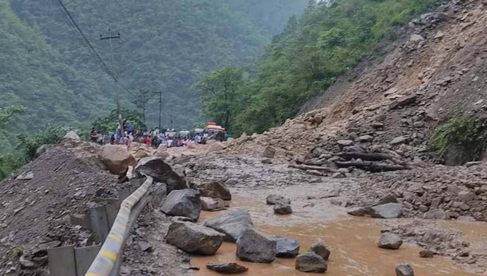 काठमाण्डौँ, २१ असार । मनसुन सक्रिय भएसँगै परेको अविरल वर्षाका कारण देशभरका विभिन्न सडकहरू अवरुद्ध भएका छन् । सडक विभागका अनुसार शनिबार बिहानदेखि अरनिको राजमार्ग पूर्ण रूपमा अवरुद्ध भएको छ । शनिबार बिहानदेखि अरनिको राजमार्गको धुलिखेल–दोलालघाट–खाडीचौर–कोदारी सडक खण्ड अवरुद्ध भएको जनाएको छ । उक्त स्थानमा सडक क्षति पुगेकाले मर्मत गर्ने ९फिलिङ गर्ने० काम भइरहेको विभागले जनाएको छ । यो राजमार्ग अवरुद्ध हुँदा चीनसँगको तातोपानी नाका जोड्ने यातायात प्रभावित भएको छ ।