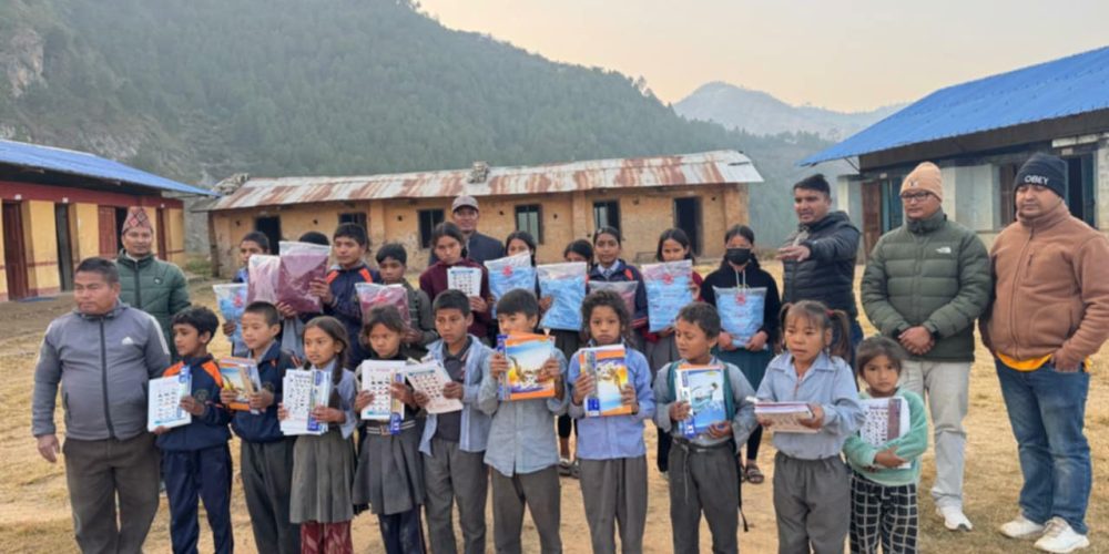 दुर्गमका अति विपन्न विद्यार्थीलाई न्यानो कपडा र शैक्षिक सामग्री वितरण