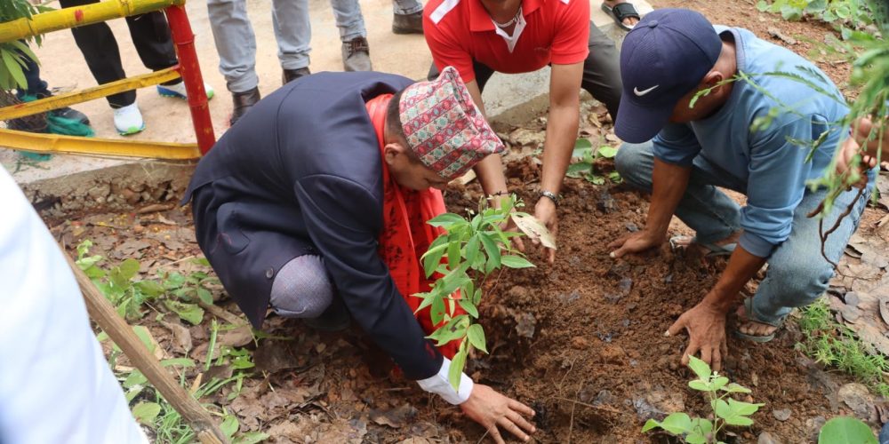 छाँपडाडामा राेपियाे तेजपात र अमलाका बिरुवा