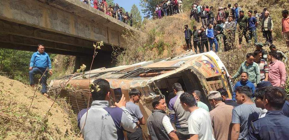 दाङबाट रुकुम तर्फ जाँदै गरेको यात्रुबाहक बस सल्यानको थारमारेमा दुर्घटना